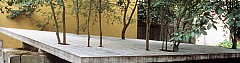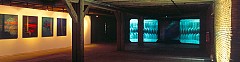 (…) In the exhibition project “3 Räume - 3 Flüsse“ (3 Rooms - 3 Rivers) an at first glance paradoxical parallel project is created: LOH a several dimensional sculpture which in its non functional ”tilted” position, forms a blatant contradiction to living nature – COR an oppressive video-installation with sound and film takes of the human heart of her friend. The three-dimensional painting of a beating heart, the gravel and sand layer separating art and nature. The viewers search for links which they manage to find when they perceive that which is separated before and in themselves (…)